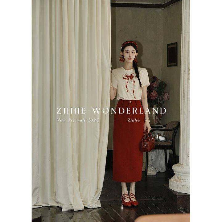 至禾Wonderland【原野斯嘉丽】原创复古珠绣蝴蝶结针织短袖+半裙
