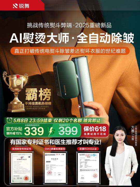 锐舞手持挂烫机2025新款熨烫机家用小型蒸汽电熨斗衣服便携式神器