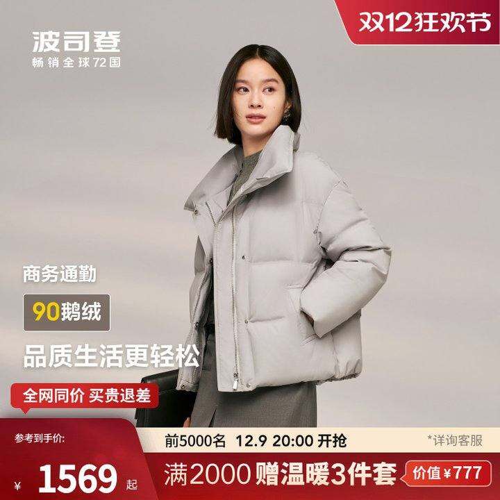 波司登2024冬季新款立领短款鹅绒羽绒服女可翻领宽松廓形格雷灰