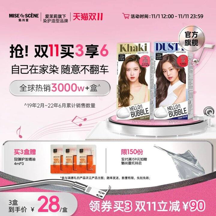 拍2件24.9、爱茉莉魅尚萱泡泡染发剂~右上角进“淘金币”拍~