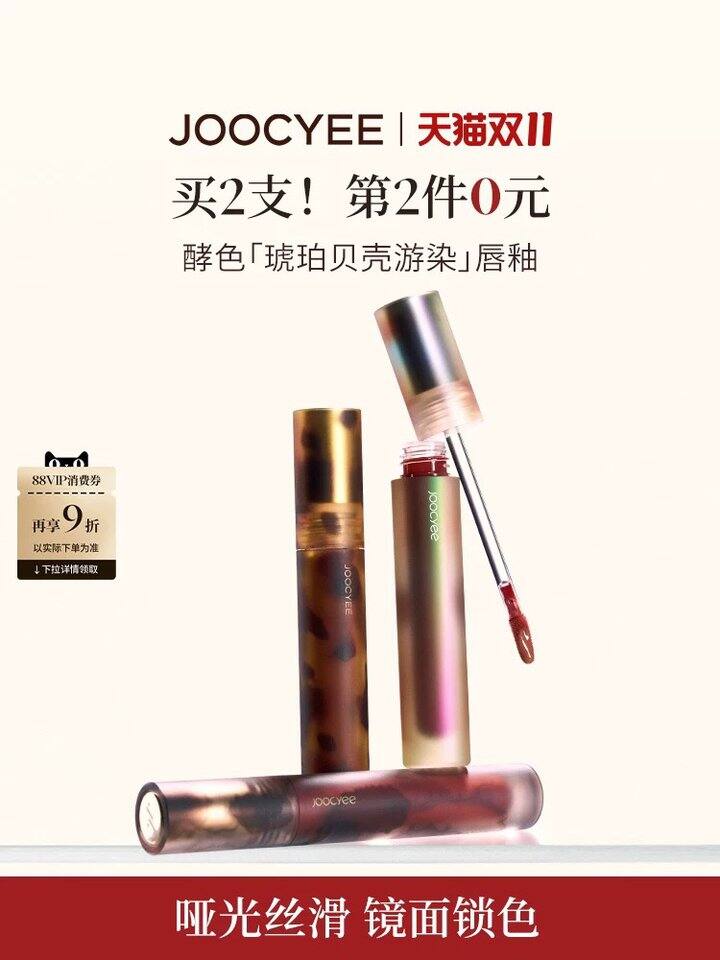 下拉拍+消费券拍3件45.8亓,折11亓/支有赠品1支,共得4支!JOOCYEE酵色唇釉唇蜜口红