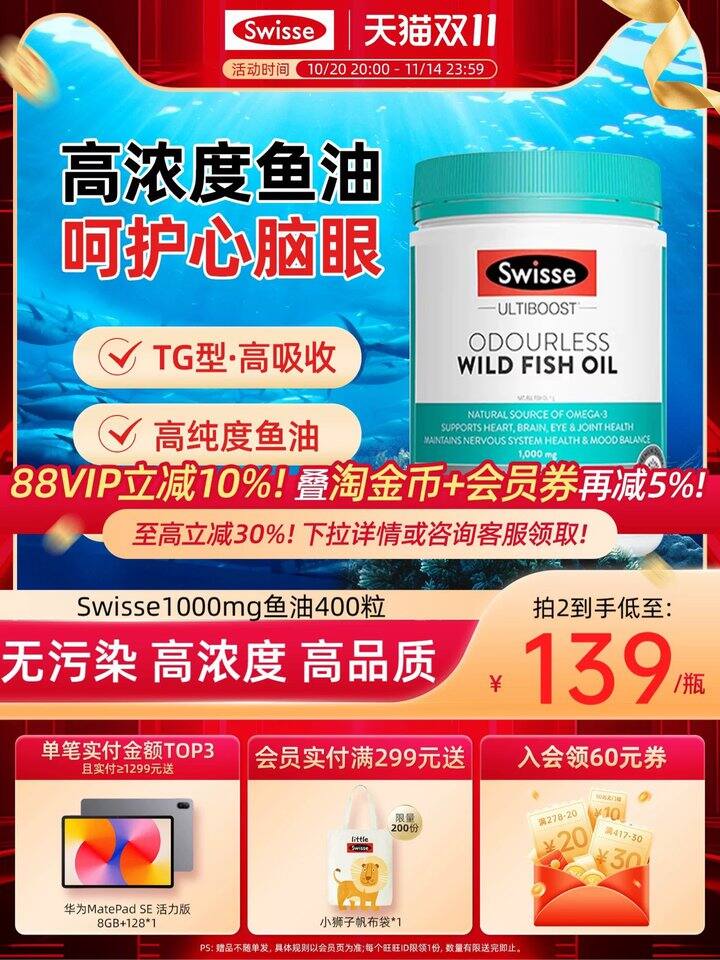 下拉详情拍,68亓 swisse斯维诗深海鱼油400粒