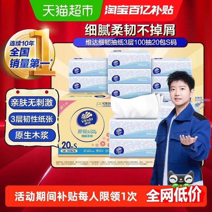 7毛一包!弹礼金🧧下拉详情拍,15.5💰维达细韧抽纸S码3层100抽20包