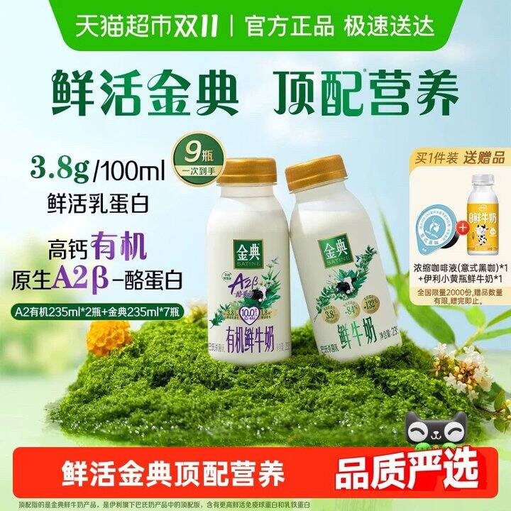 伊利金典鲜牛奶组合235ml*7瓶+A2 235ml*2瓶贈235ml*1瓶下拉拍💰28!