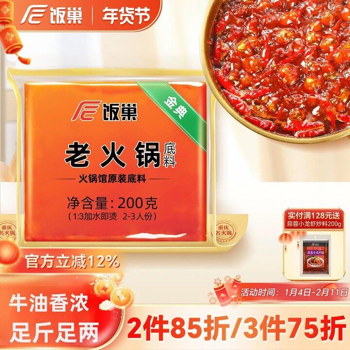 闺蜜推荐的!很够味!饭巢火锅底料200g;反复领三次券,拍3件💰18.7 她之前好价11一包买的!淘金币更低