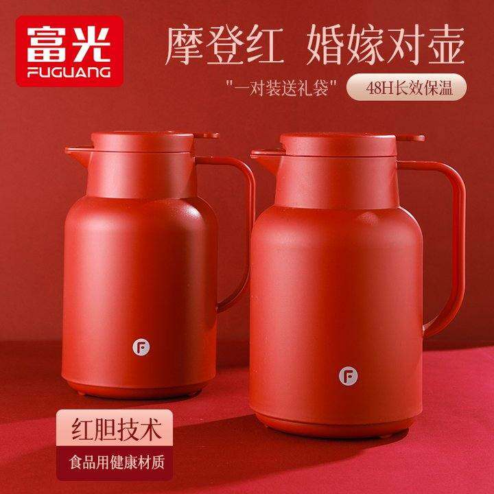 富光保温壶家用结婚壶红色陪嫁玻璃内胆保温瓶送礼暖壶大容量水壶