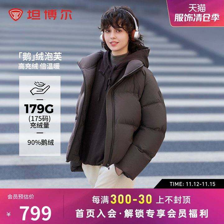 坦博尔24冬季新款女鹅绒立领短款面包羽绒服大廓形高充绒保暖外套