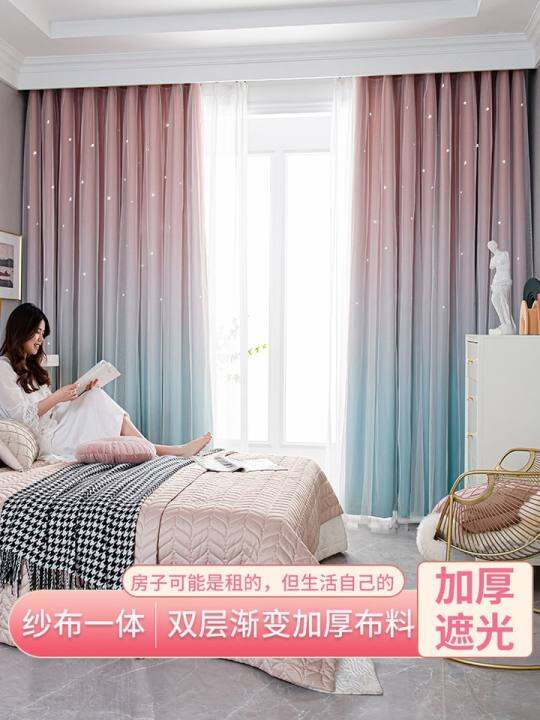 新款北欧简约窗帘成品全遮光卧室少女心公主房双层布纱一体窗帘布