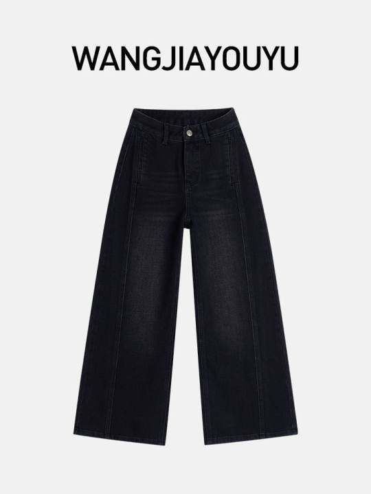 王家有鱼【小个子定制】秋季新款黑灰直筒阔腿裤女2025爆款牛仔裤