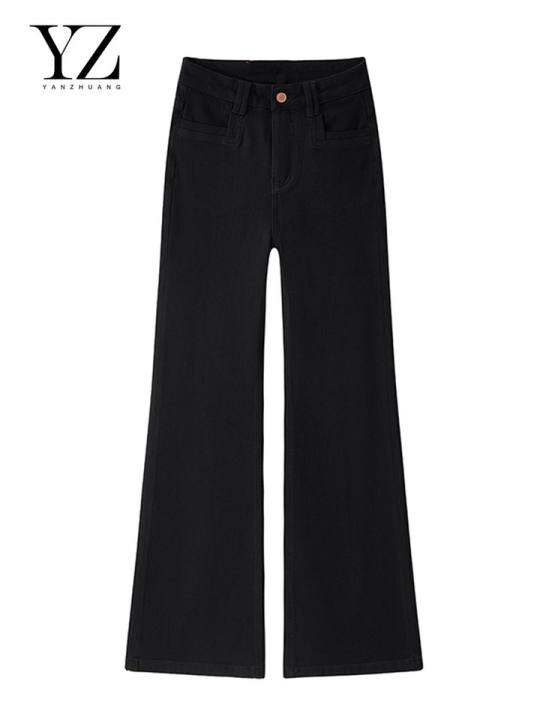 言装秋季高级黑四面弹不贴腿【筒叭裤】显瘦牛仔女直筒喇叭裤2025