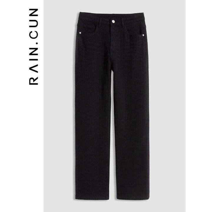 然与纯2024秋弹力直筒牛仔裤女高腰梨形微胖mm黑色复古窄版阔腿裤