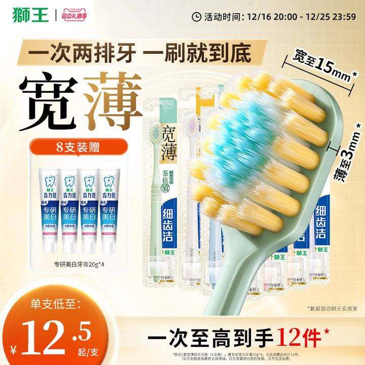 LION狮王细齿洁宽薄宽头软毛牙刷成人软毛家庭装家用情侣专用