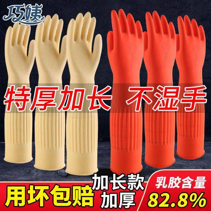 巧姨加长橡胶防水手套加厚加绒洗碗女洗衣服长家务厨房胶冬天乳胶