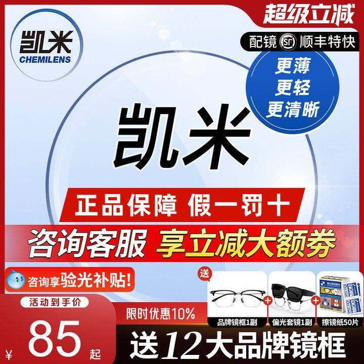凯米镜片U6X防蓝光金罡1.74超薄配高度近视眼镜片1.67官方旗舰U2