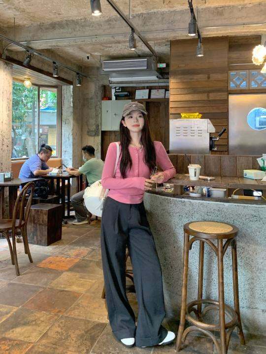 切糕自制小个子早秋新款女长袖t恤针织衫打底衫粉色内搭上衣