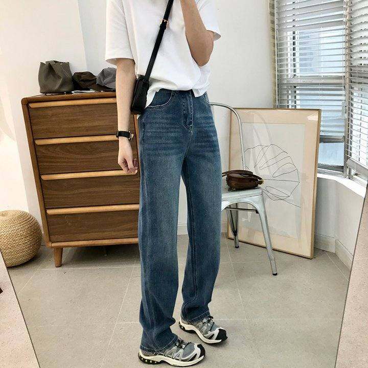 重磅4色!万向弹直筒牛仔裤女春夏宽松百搭高腰显腿直窄版阔腿裤