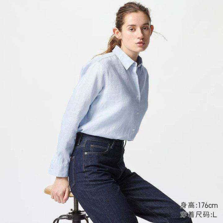 优衣库女装法国麻衬衫长袖衬衣上衣空调衫薄外套25春夏新款475647