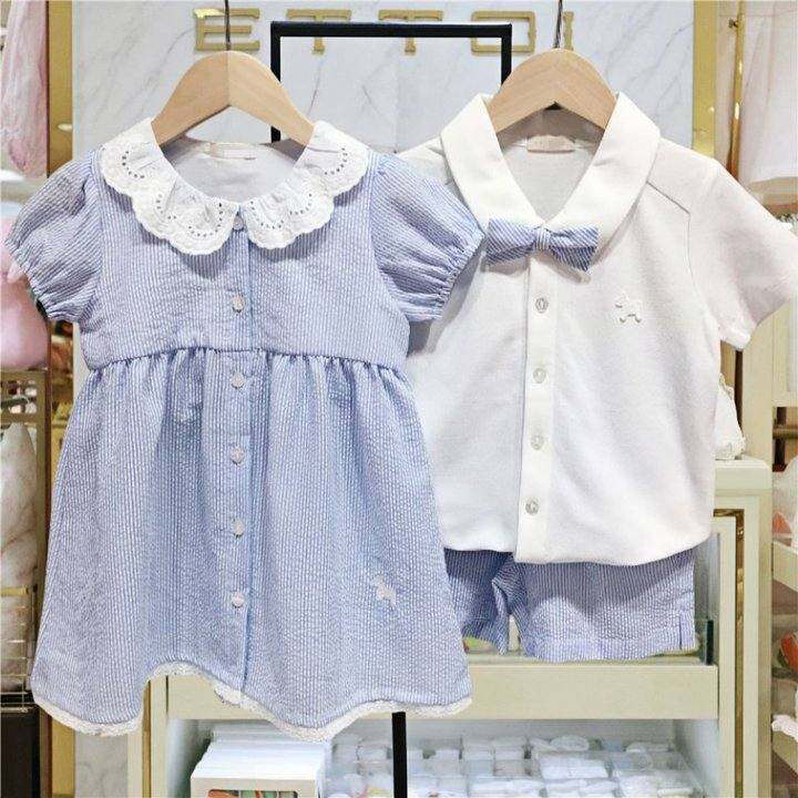 男宝宝领结衬衫短裤两件套装女童花边连衣裙韩版儿童姐弟装兄妹装