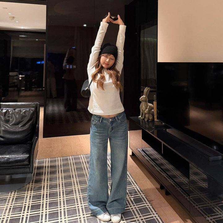 切切这个牛仔裤版型可以,就是有些硬还是中低腰,实在穿不习惯