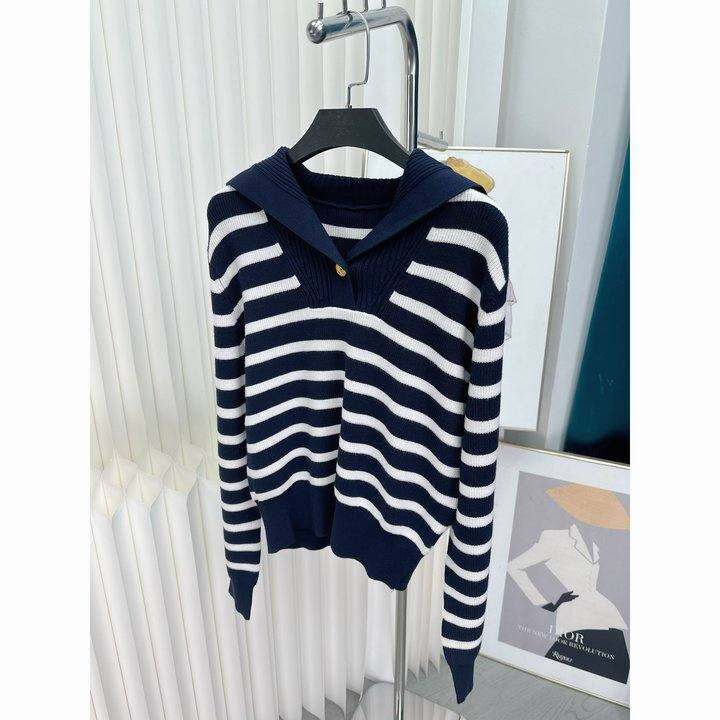 外贸单海军领绵羊毛针织衫蓝白条纹套头上衣s08896
