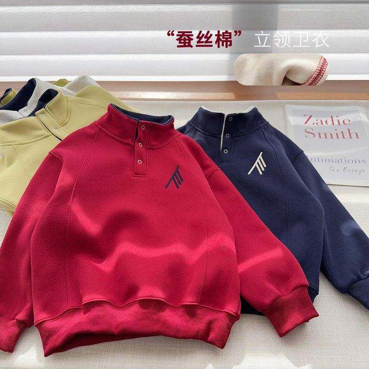 中大童蚕丝羊毛立领卫衣2024年冬季加厚款洋气刺绣内搭男童上衣