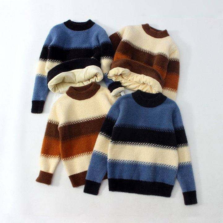 男童仿水貂绒毛衣冬季加绒中大儿童装针织打底衫宽条纹软糯保暖厚