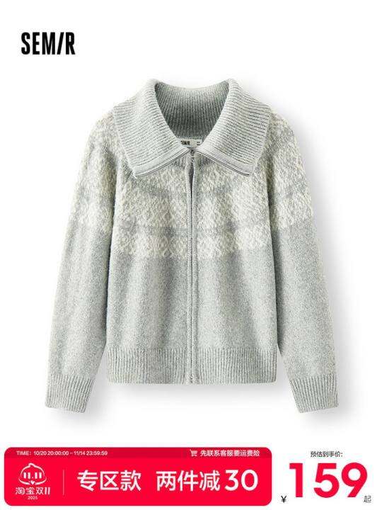 森马针织开衫女冬费尔岛提花宽松插肩袖翻领2025新款休闲气质毛衫