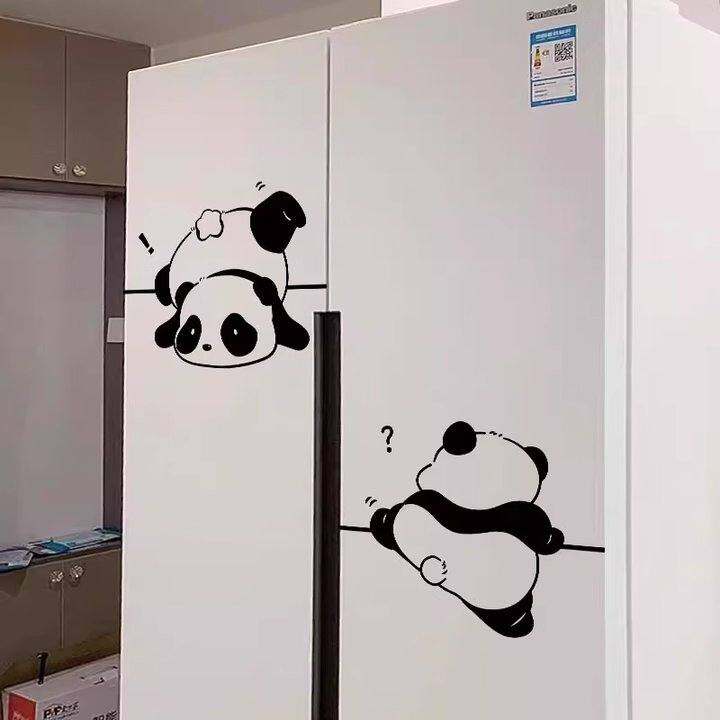 熊猫可爱装饰玻璃门推拉门防撞贴纸柜门冰箱门布置创意简笔贴画