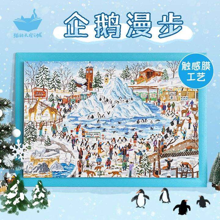猫的天空之城拼图企鹅漫步1000片触感膜可爱冬季动物园拼图玩具