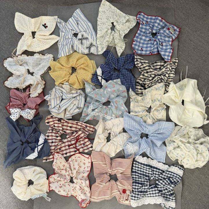 跑量满两个包邮甜美蝴蝶结方巾大肠发圈方形扎头发低马尾发圈发圈