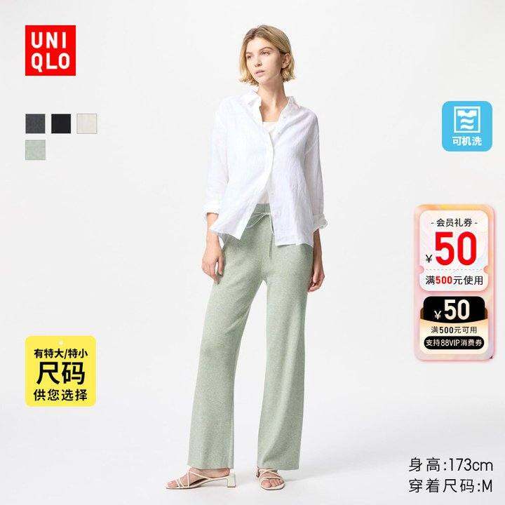 Uniqlo女装可机洗纽花针织长裤/休闲 𫔮裤新款25秋冬新款478848