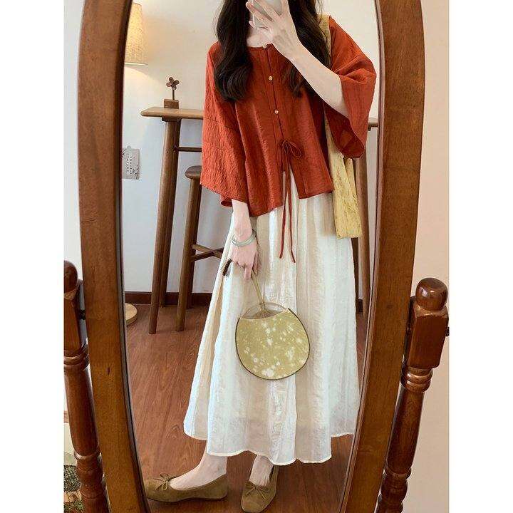 CHICHI茶话会~显白天丝提花上衣日常中式国风夏日小衫凉快舒适