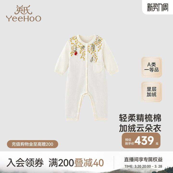 【商场同款】英氏女宝宝连体衣秋冬长袖加绒婴儿衣服保暖纯棉哈衣