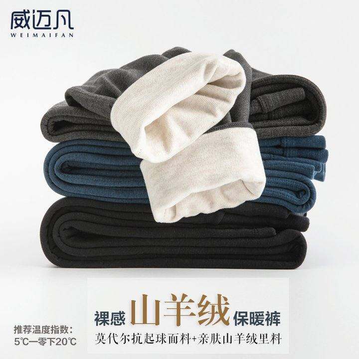 威迈凡莫代尔羊绒保暖裤秋冬季男士中厚棉裤女加厚羊毛德绒打底裤