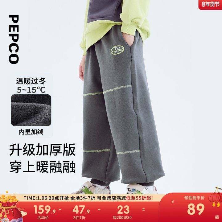 小猪班纳童装2024冬装新款儿童裤子中大童男童长裤男孩休闲裤加绒