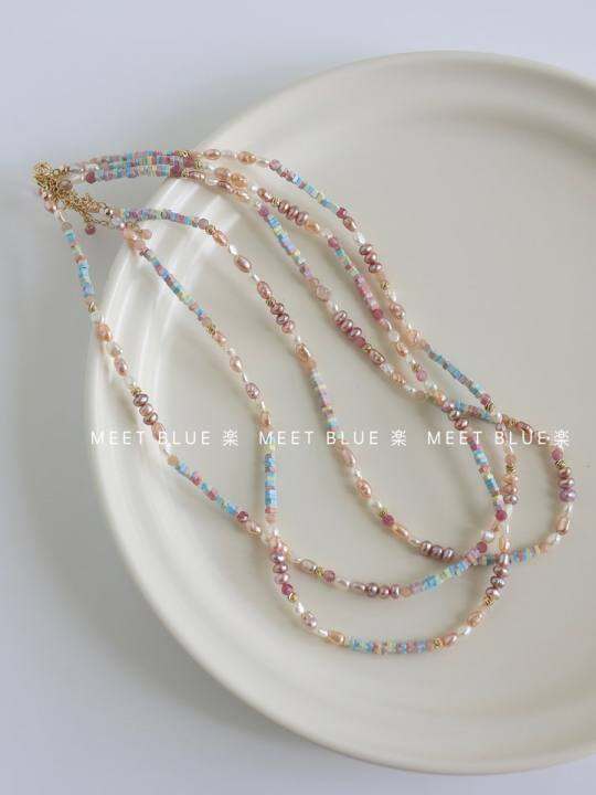 梦幻粉紫色天然巴洛克珍珠项链女不规则小众原创设计美国14k包金