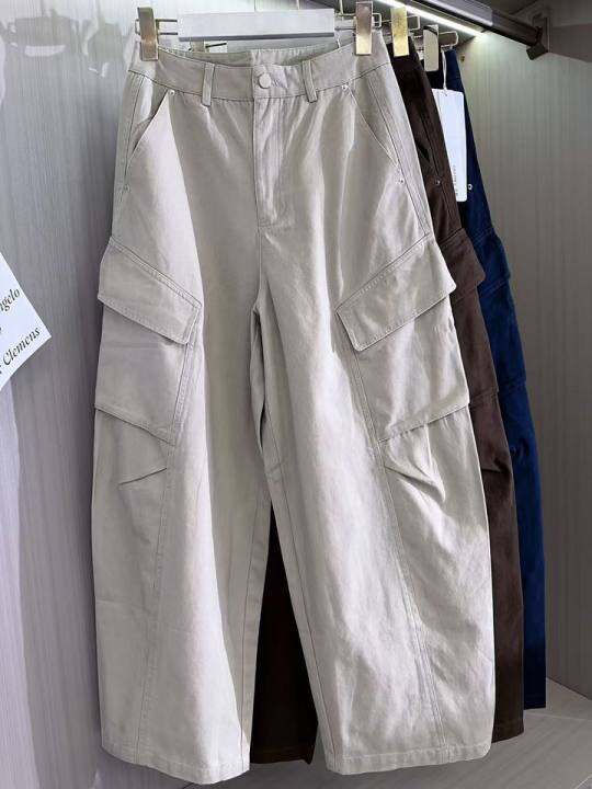 12/29网红单水洗卡其摩登高腰显瘦率性宽松直筒加绒阔腿9622