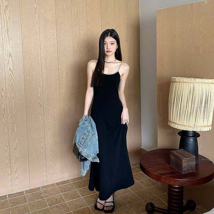 Zy GODDESS春夏新款纯欲辣妹风收腰吊带连衣裙修身显瘦打底长裙女
