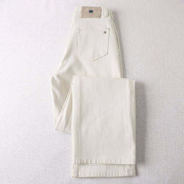 宝藏神裤!秋季四面弹米白色高腰直筒牛仔裤女小个子窄版阔腿长裤