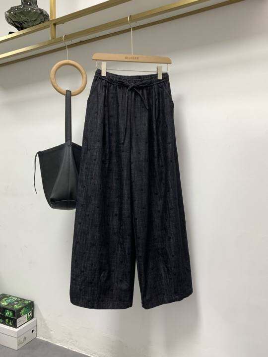 miluroom米鹿刺绣波点牛仔裤女2025秋季新款宽松显瘦松紧腰阔腿裤