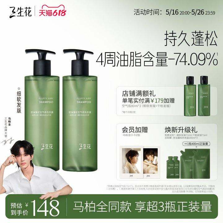【油头分发护理】三生花空气瓶油头专研长效控油蓬松洗发水0硅油
