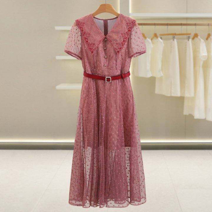 【郁】覆古风格纹翻领短袖装饰扣连衣裙夏季女装2025新款芳草芬菲