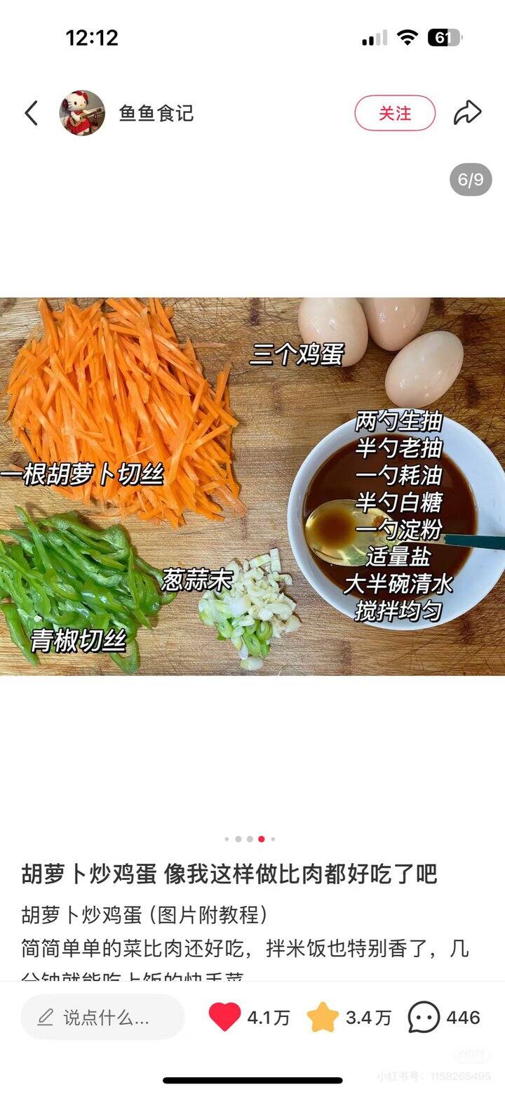 这个教程的炒胡萝卜丝也很好吃,无敌好吃,基本上吃不出来胡萝卜丝的味道,不是脆脆的哦。图片是很早之前的但我做过好几次了无一失手!!!