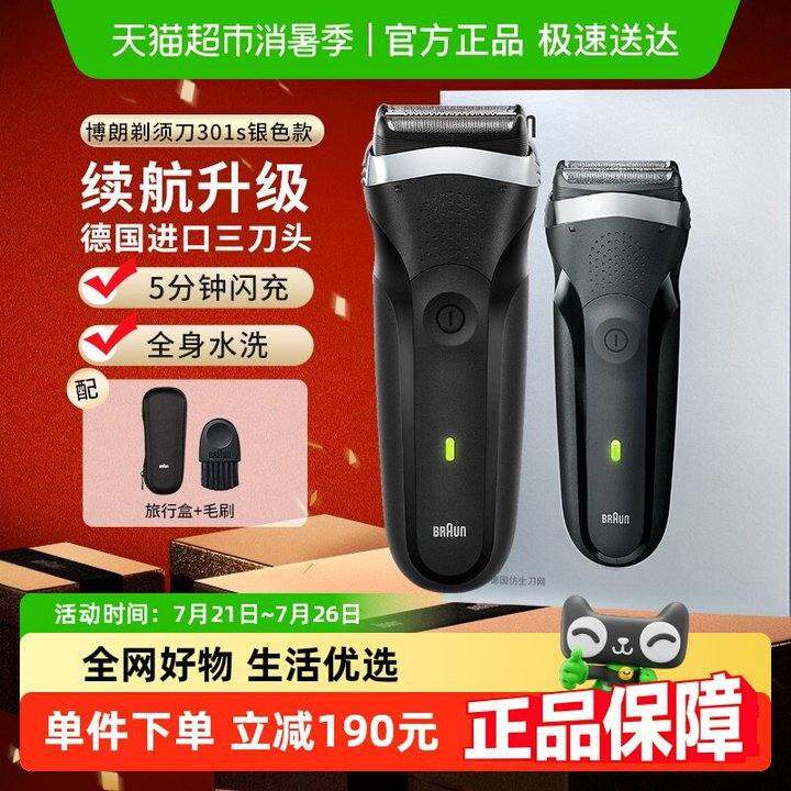 Braun/博朗3系301往复式电动剃须刀刮胡刀炫银礼盒装送男友送爸爸