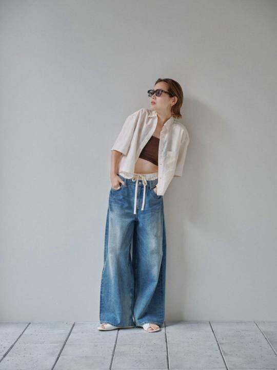 吉田TDF 24新款拼接式宽松休闲阔腿裤牛仔裤