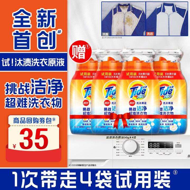 汰渍洗衣原液50g×4袋洗衣液奇迹焕净免预处理买回购券送试用装