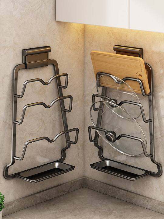 锅盖架壁挂式免打孔厨房置物架多功能家用收纳菜板放置器砧板架子