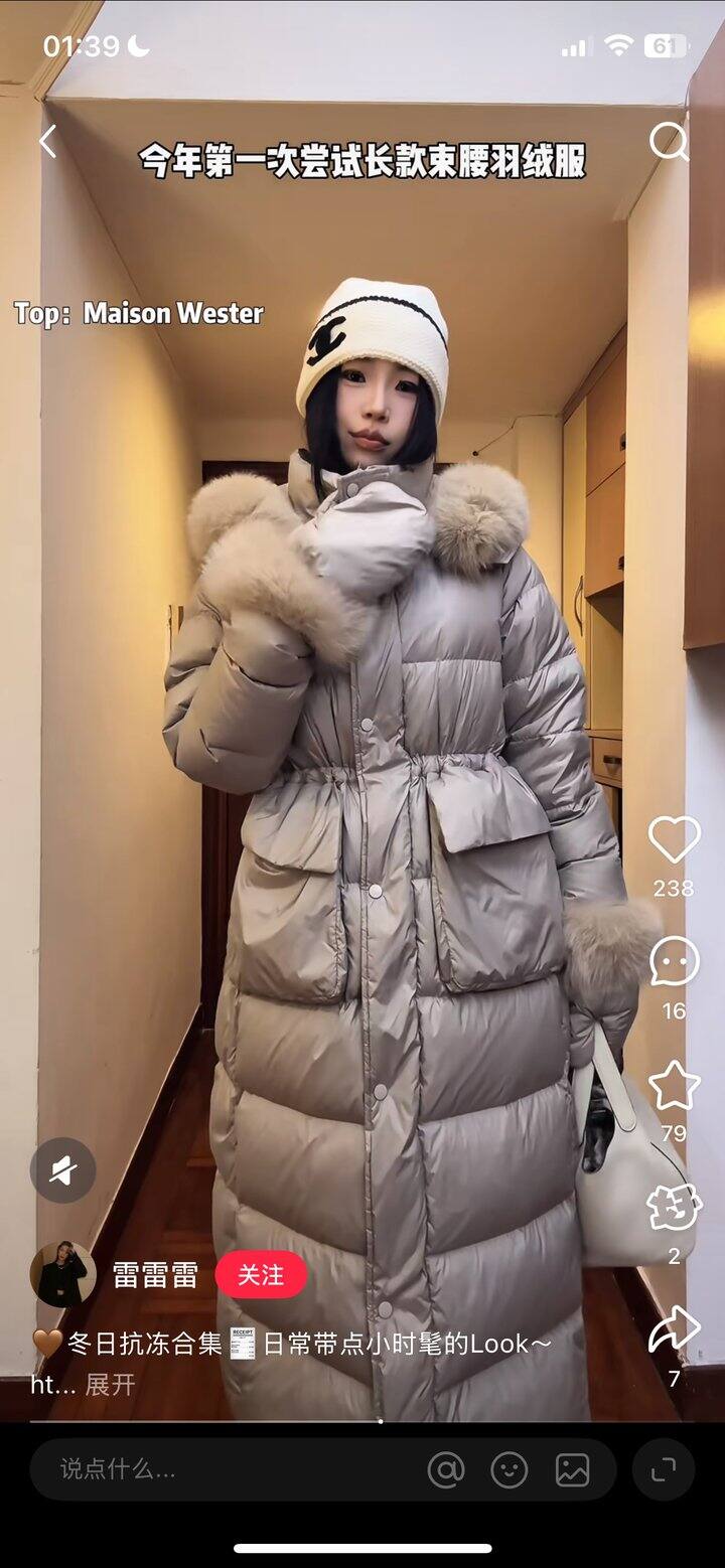 凌晨的时候被这件羽绒服击中了,3200+的客单还是个我没听过的牌子(只能说我孤陋寡闻),最主要的是还没几家店卖。。。我很难得种草那种长款的毛领的收腰羽绒服,主要这件的淡淡的银灰色好特别。。。如果大家有看到类似的这种颜色的,可以给我推荐
