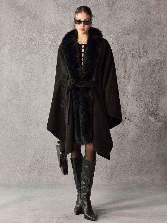 MOSU 6.7牦牛绒+93.3羊毛丨4米用料进口狐狸毛领斗篷大衣毛呢外套
