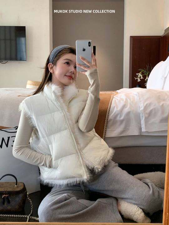 MUKOK设计感90白鸭绒轻薄两穿环保毛毛短款小个子羽绒马甲